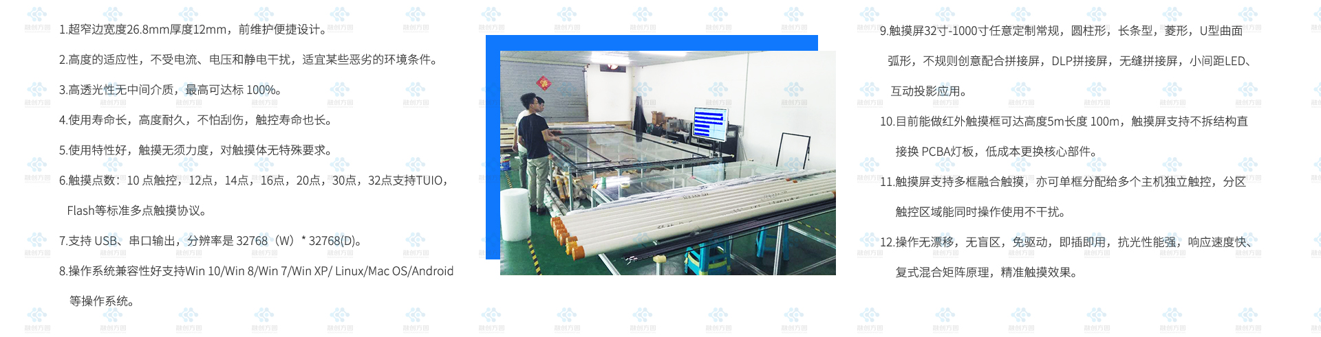 融創方圓55寸2×2拼接觸摸屏入駐深圳某產業園大廳主要用來可視化數據集中顯示互動觸摸屏需求。 55寸2×2拼接觸摸屏對角線為110寸拼接大顯示觸摸屏,...